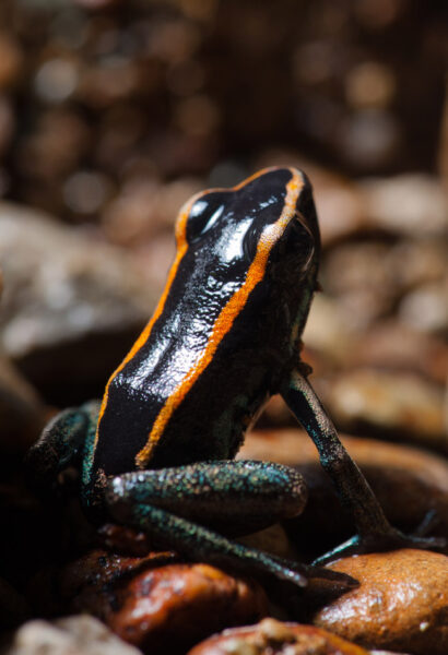 It’s hardly a coincidence that I had selected the Osa Peninsula for a project on tropical amphibians. Around the world, amphibian habitats and populations are experiencing rapid decline, and throughout the tropics the ecosystems that host the greatest amphibian biodiversity often face the greatest threats. From Borneo to Brazil to Madagascar, climate change, deforestation, agricultural expansion, pollution, and the fungal disease chytridiomycosis have combined to take a terrible toll, leaving almost a third of all known amphibian species listed as “threatened” – or worse – on the Red List maintained by the International Union for the Conservation of Nature (IUCN). Our little friend, the endemic Golfo Dulce poison dart frog, is listed as “endangered,” but on the Osa, dozens of native amphibian species seem to be thriving.