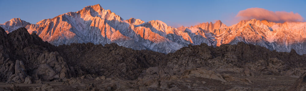 Moonset over Minarets, Mount Ritter, and Banner Peak